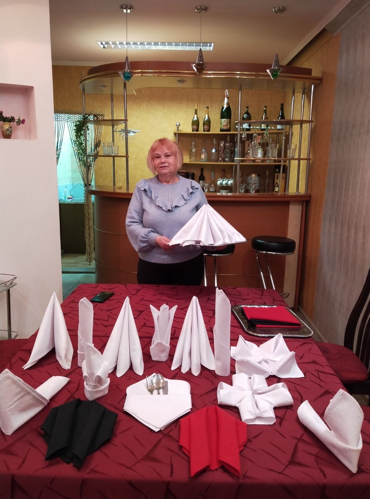 Майстер виробничого навчання Наталія Квартник, у навчальному кафе провела онлайн майстер-клас на тему: “Оригінальні способи складання серветок”.