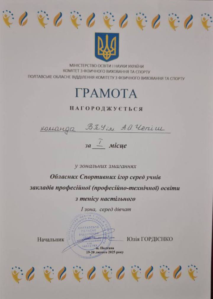 Із 19 по 20 лютого 2025 року проходили обласні спортивні ігри з настільного тенісу серед здобувачів освіти закладів професійної (професійно-технічної) освіти, 1 зона.