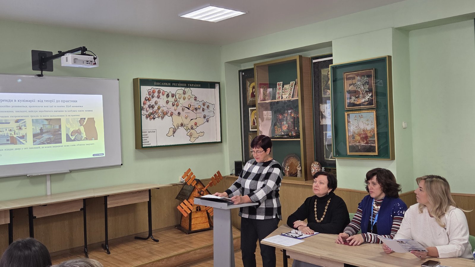 Викладач училища, Кравцова Людмила Вікторівна, виступила очно з доповіддю: «ГАСТРОНОМІЧНІ ЛАБОРАТОРІЇ: ЕКСПЕРИМЕНТИ ЗІ СМАКАМИ». Вона висвітлила інноваційні методики, використання цифрових технологій та практичні елементи («гастрономічні лабораторії») у підготовці кухарів.