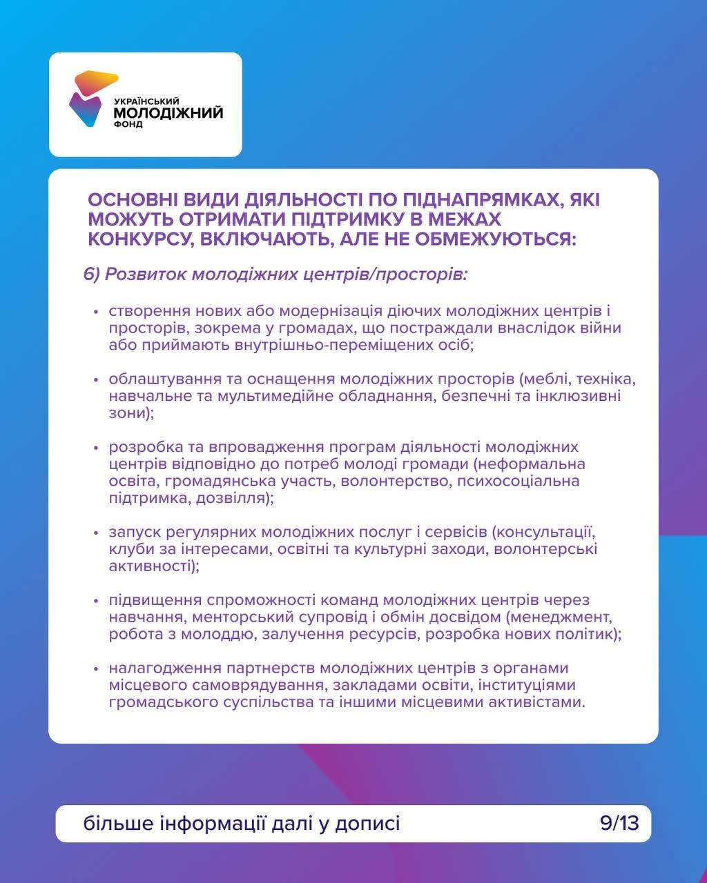 – молодіжні центри та простори.
