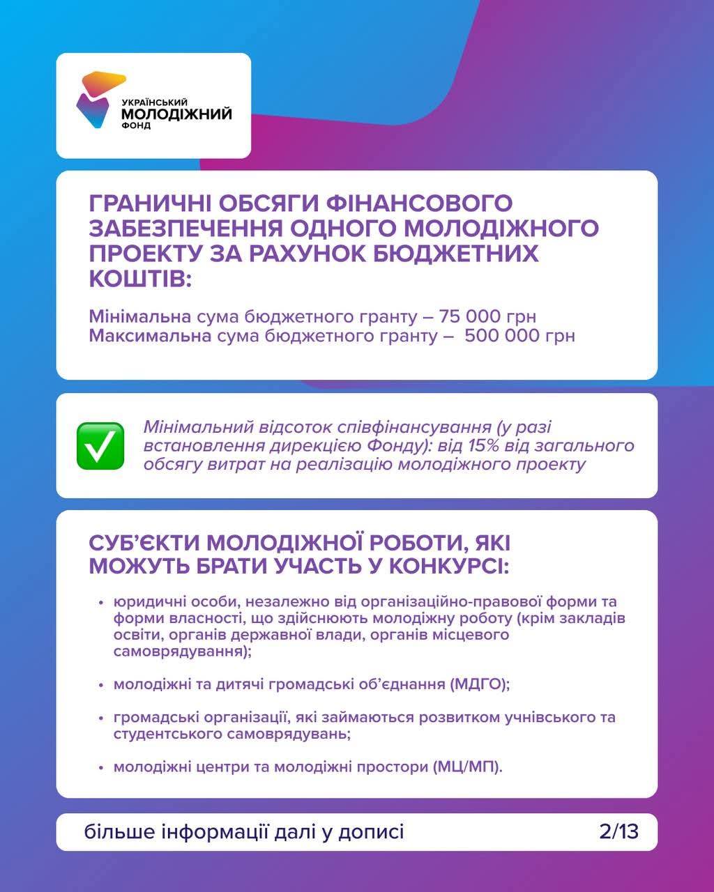 Документи необхідні у форматі PDF, а кошторис у форматі Excel на uayouthfoundation@gmail.com.